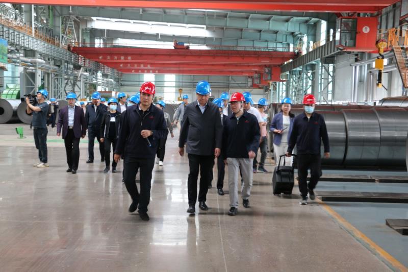5月21日上午,觀摩團(tuán)一行在市委常委、統(tǒng)戰(zhàn)部部長孟和巴特爾的帶領(lǐng)下來到我公司。公司總經(jīng)理佟國山、黨委書記劉欣、黨委副書記李曉杰在現(xiàn)場迎接,并陪同觀摩團(tuán)參觀了公司年產(chǎn)200萬噸冷軋鍍鋅一期項(xiàng)目。劉欣書記代表公司詳細(xì)介紹了該項(xiàng)目的生產(chǎn)工藝流程,讓觀摩團(tuán)成員了解了黑色的熱軋帶鋼蛻變?yōu)楣饬恋腻冧\帶鋼的過程。